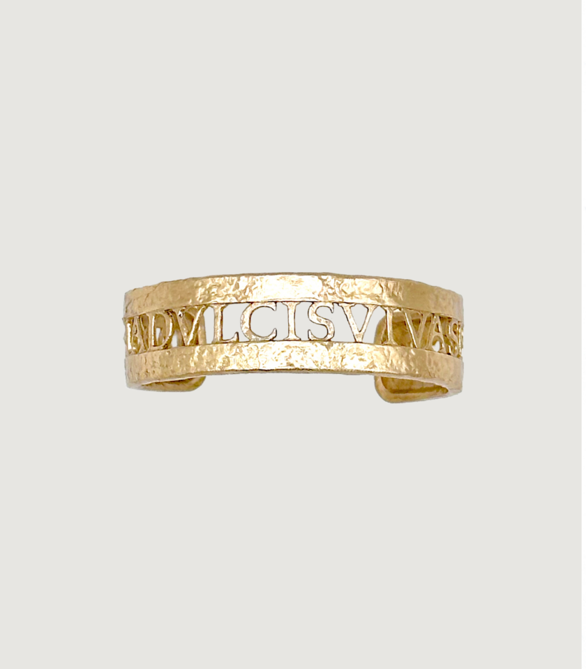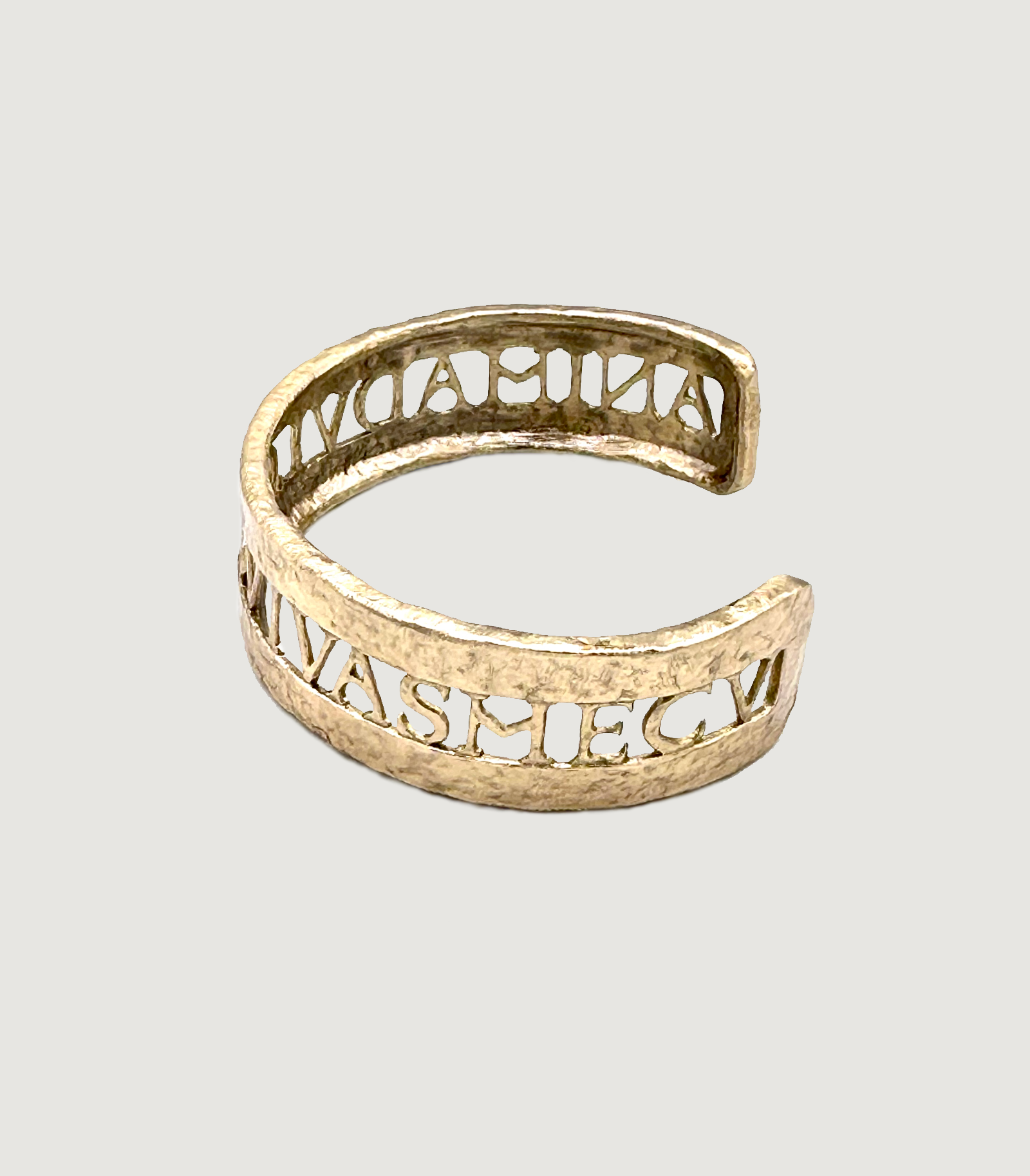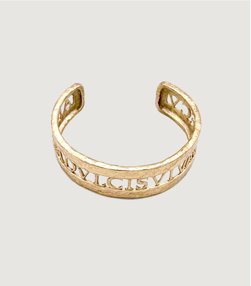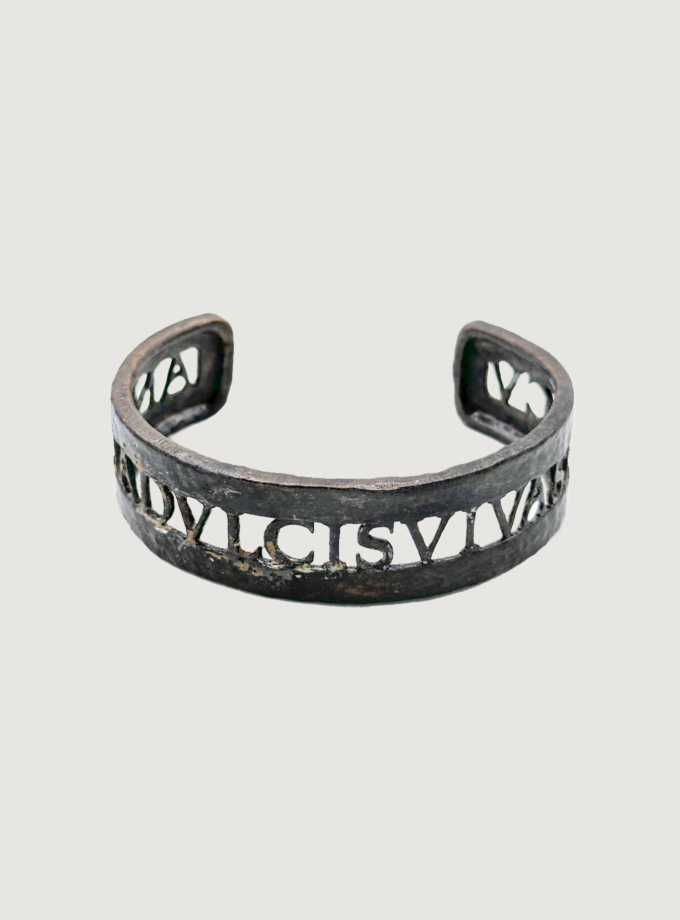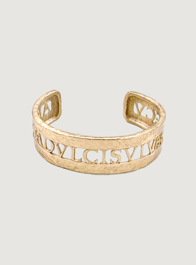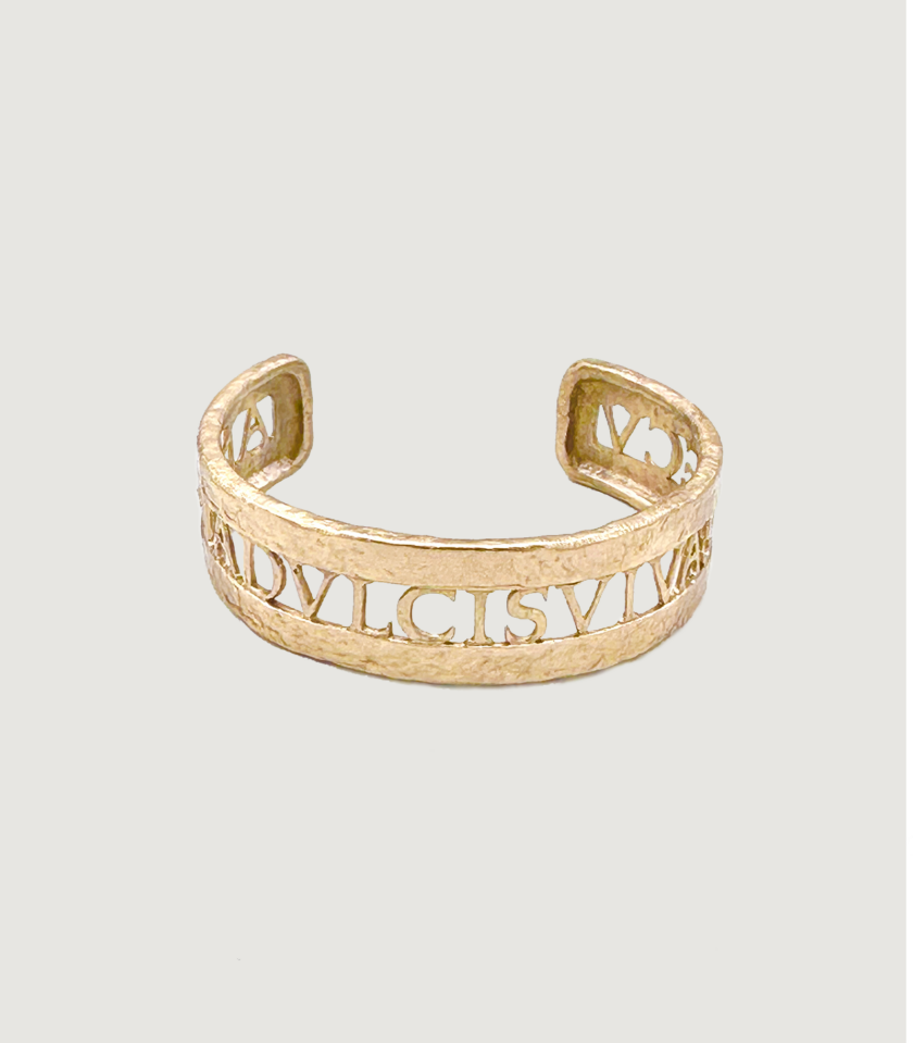 “Anima Dulcis Vivas Mecu(m)” or ‘may you always live beside me sweet soul’ is the Latin inscription engraved on a 4th century Roman gold ring that we have reproduced as a bronze bangle.