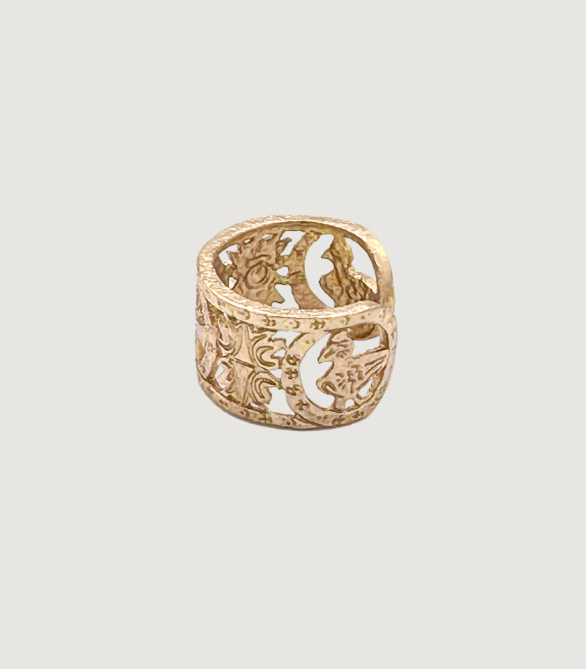 Bronze ring with pierced motif of cross, birds and acanthus leaf, typical of the Byzantine Empire or Eastern Roman Empire, 5th-15th century AD. Original gold ring from a private collection.